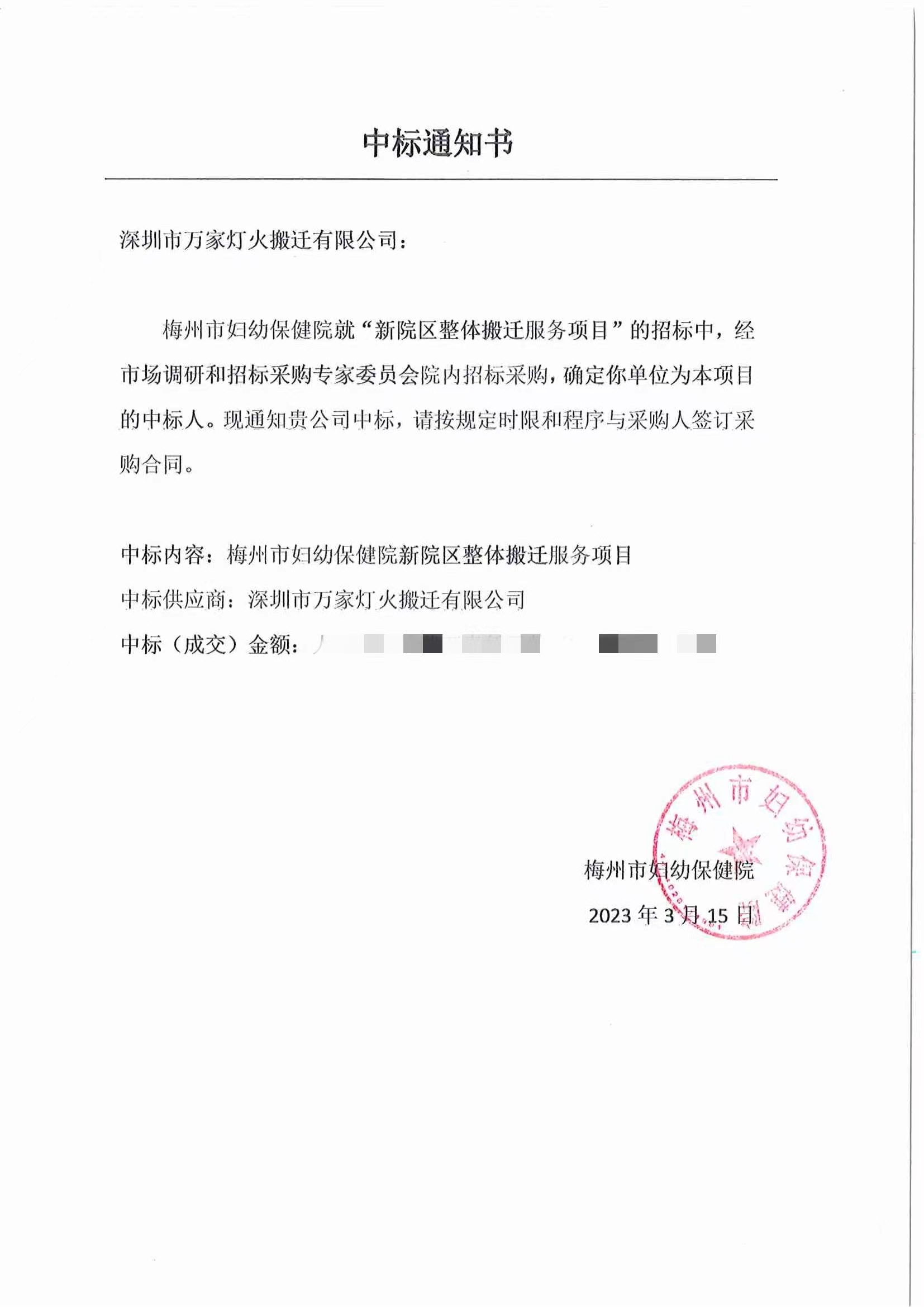 梅州市妇幼保健院新院区搬家项目